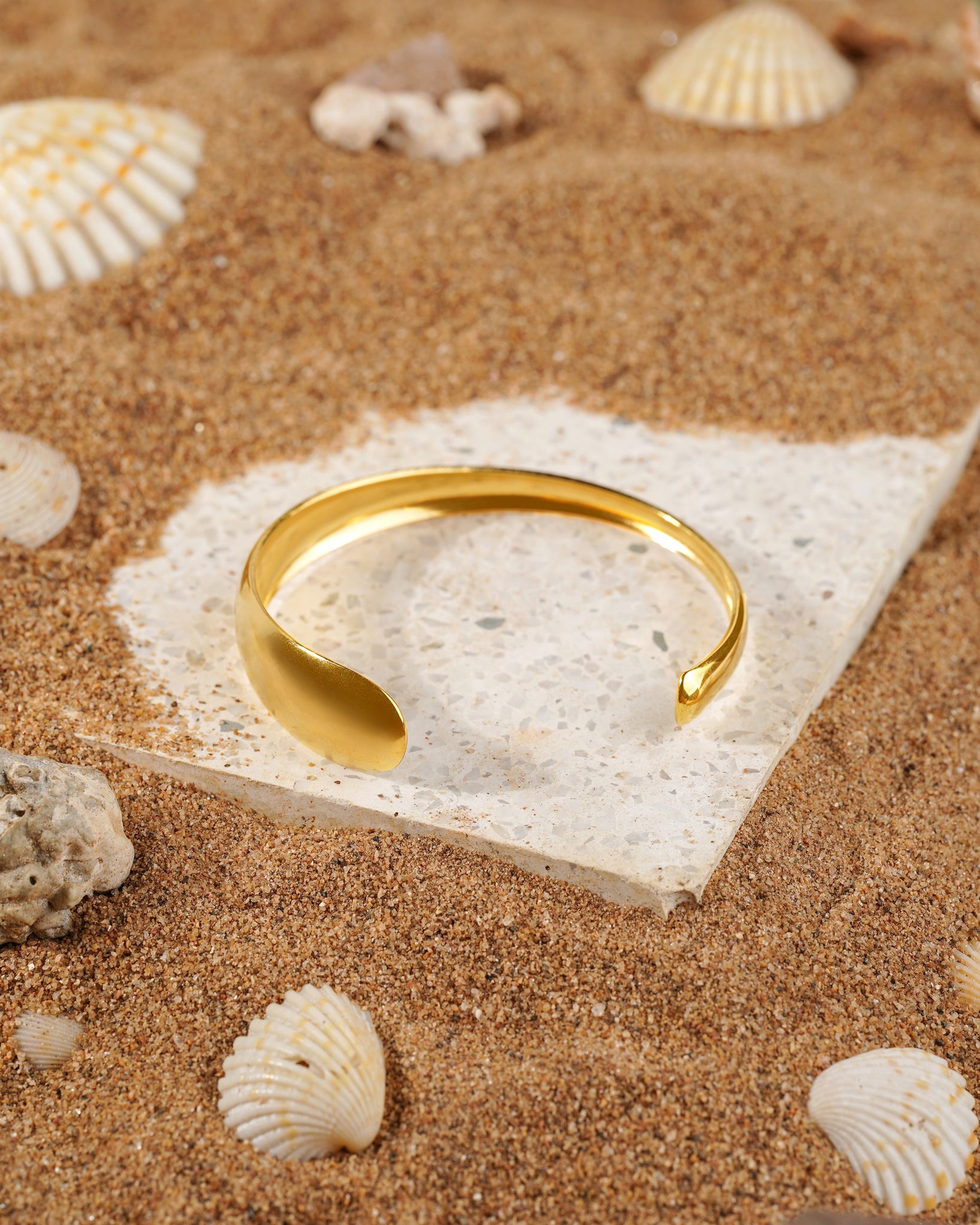 The Calypsa Cuff combines refined elegance with versatile styling. Crafted from a luxurious 18k gold plating, this adjustable cuff offers a polished finish that complements both everyday wear and special occasions. The adjustable design ensures a comfortable fit for most wrist sizes. A timeless piece that transitions seamlessly from day to evening.