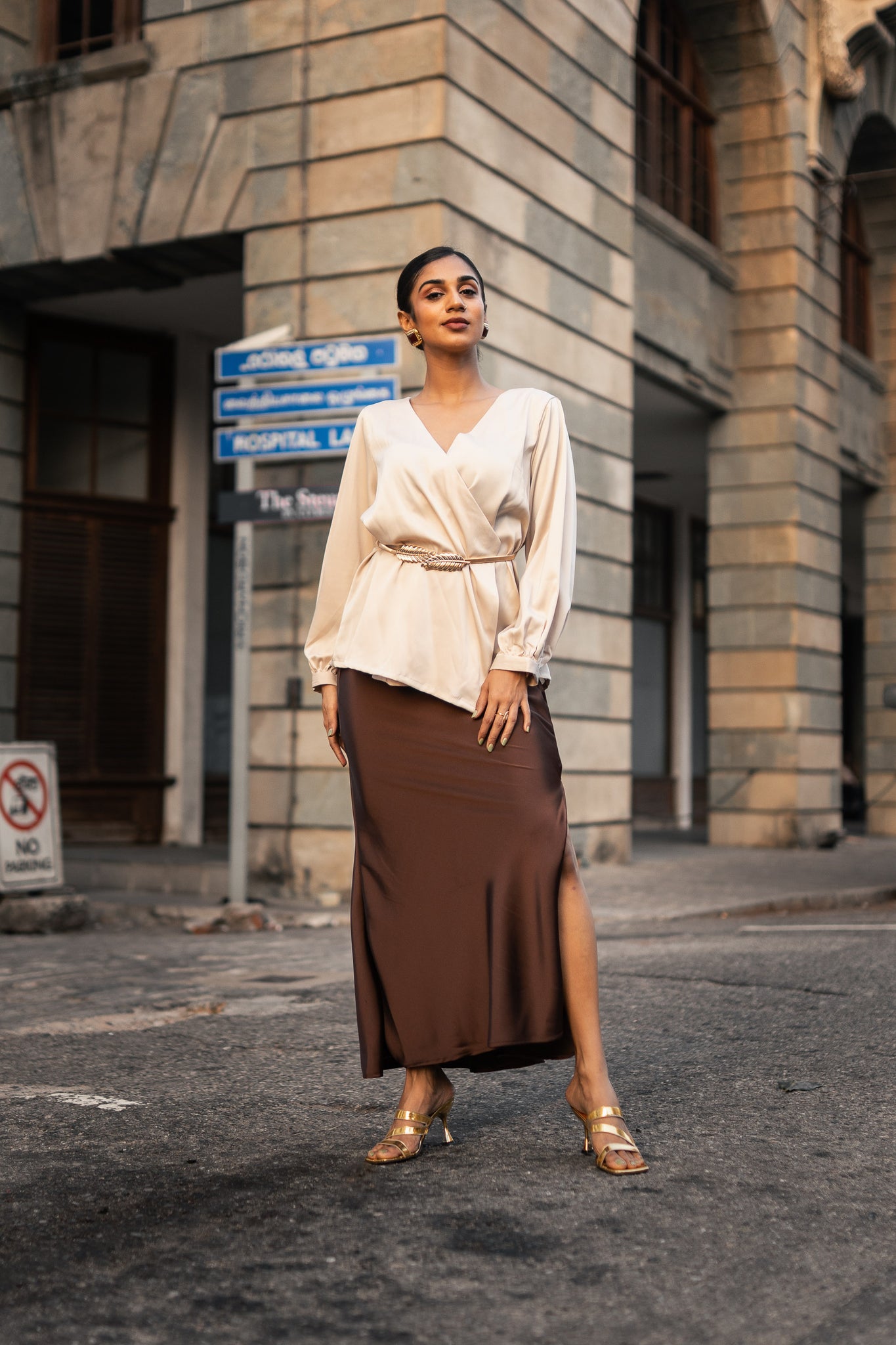 Embrace effortless elegance with the Yasmin Tie Top in Ivory. This wrap style design features a flattering silhouette that cinches at the waist, complemented by a sophisticated V-neckline and long sleeves in luxurious satin fabric with gentle stretch. The included decorative belt adds polish and definition, making it ideal for transitioning from office to evening occasions. Modern, feminine, and versatile a wardrobe essential for any occasion.