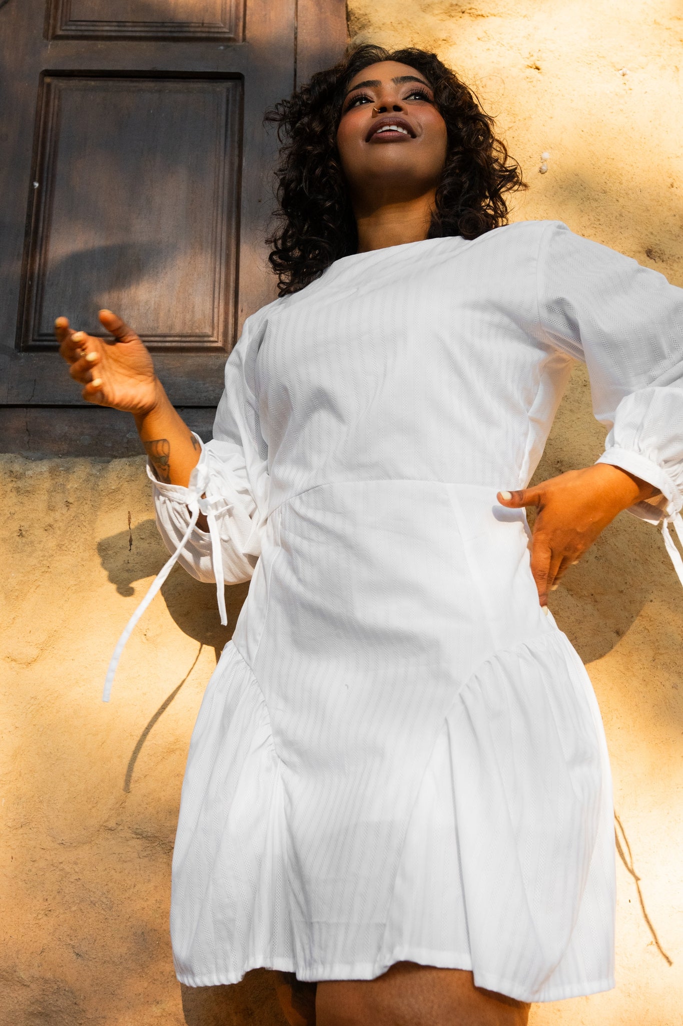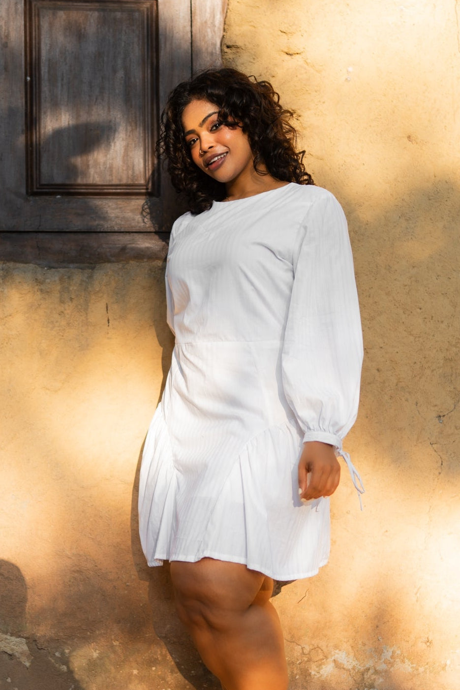 Chic mini length dress with a playful, flattering silhouette perfect for festive celebrations. Elegant long sleeves add a graceful, modest touch while keeping the look effortlessly stylish. Adjustable tie-up sleeve hem detail provides a soft, feminine accent you can customize to your preference. Crafted from breathable cotton printed fabric, this dress is lightweight and comfortable ideal for warm Avurudu celebrations and keeping you fresh throughout the day. The back zipper closure ensures easy wear with a clean, seamless fit. Designed for effortless day-to-evening versatility, the Lily Mini Dress transitions seamlessly from family gatherings to outings and celebrations. Modern silhouette meets festive spirit a dress made for joyful moments and cherished traditions.