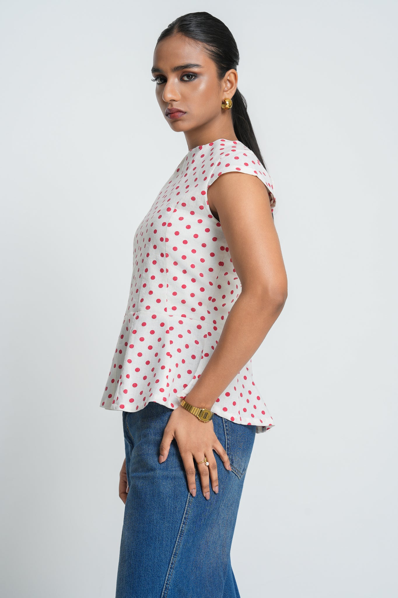 The Carmen Peplum Top delivers polished sophistication with its round neckline and cap sleeves, creating an effortlessly refined silhouette. The signature peplum flares gracefully at the waist, enhancing your natural curves with flattering structure. Fully panelled construction ensures a tailored fit, while the discreet back zipper allows seamless dressing. Equally at home in the office or paired with your favorite skirt for weekend wear, this versatile black top transitions seamlessly across your wardrobe.